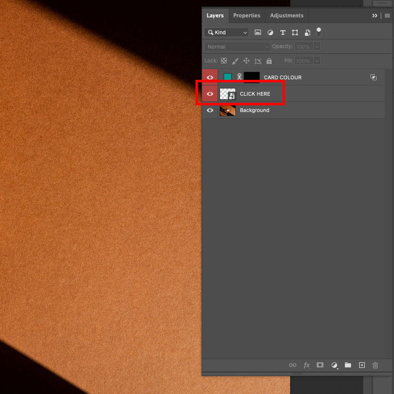 To add your design simply double click the ‘Click Here’ layer image, this will open the smart object in a new file window.